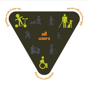 If we provide for a person using a wheelchair, a person who cannot see, and a very young, enthusiastic kid Zippeedeeing on a push scooter, we are most likely going to provide for everyone. This is why we always keep in mind the 'All Users' triangle on our projects.
