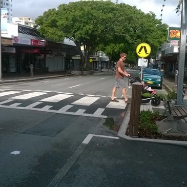 Queensland now recommends raised crossings on all approaches of roundabouts. This overcomes pedestrian safety and accessibility issues at roundabouts. Instead of being one of the most difficult places for people to cross, they become some of the safest and easiest. These treatments are an early example. Sidelines Traffic undertook a Safe System Assessment to support this project.